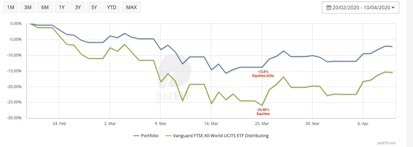 At the height of the crisis, this portfolio was down 14%. I was very glad I held gilts on 23 March but I doubt I’d have freaked out at -16% either. With that said, everybody has a tipping point…