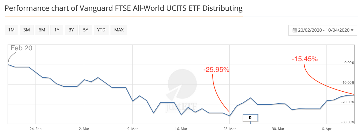 From that February high, global equities hit a low of -25.95% on 23 March. (To relive the panic, read this coronavirus crash edit culled from the Monevator comment threads.)