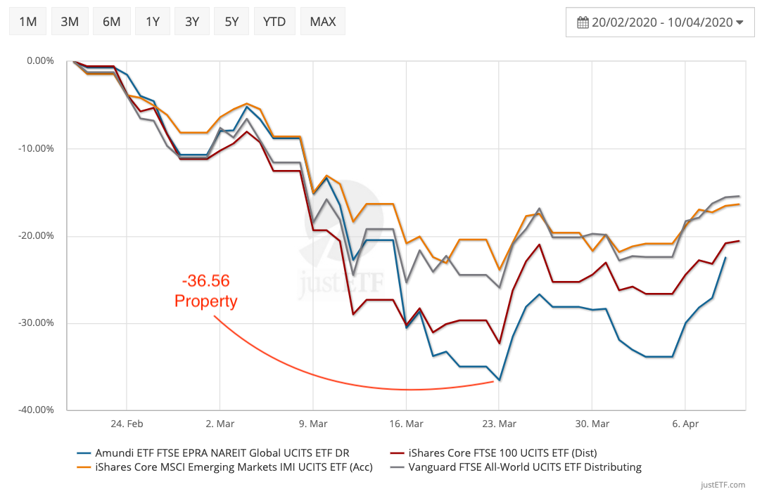 • interested in your view on property, I think before you said that you did not believe it was a good diversification for equities, but as your post shows property has been impacted much worse than equities. Have you reconsidered your view on it as a diversification? Property still seems to me to behave differently to other assets, but maybe I’m just desperate to justify why I’m hanging on to the worst performing proportion of my portfolio.