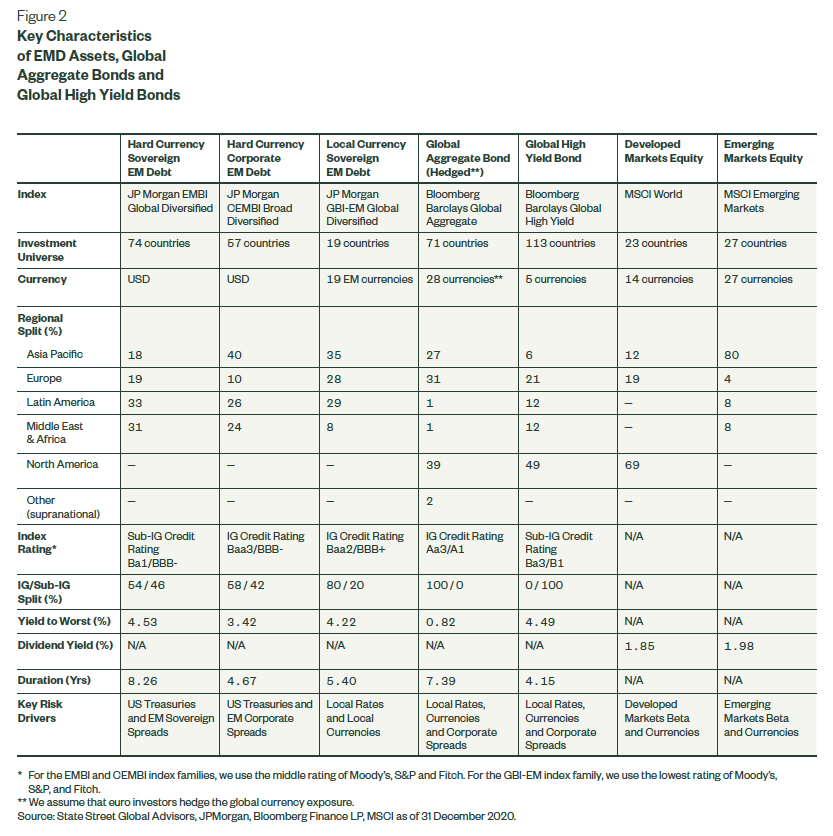 State Street. “Case for Allocating to Emerging Market Debt.” February 2021. Page 6.