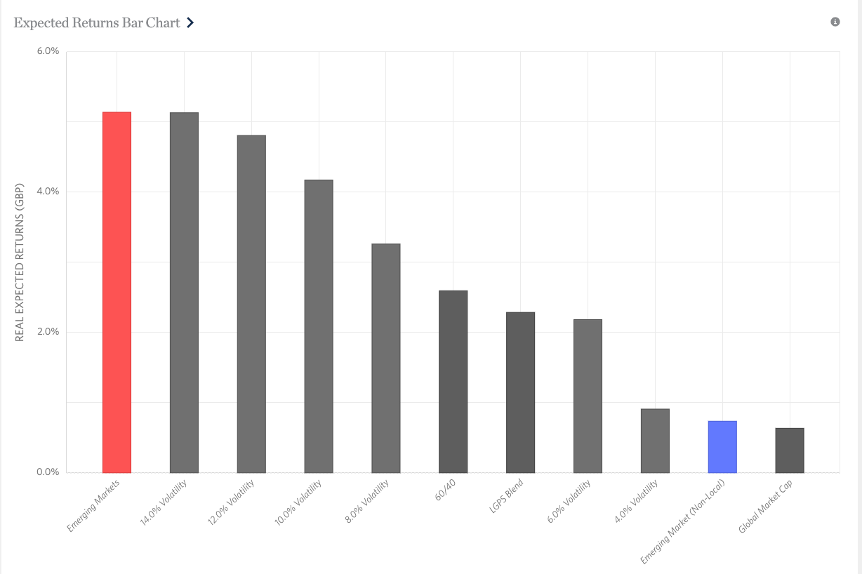 This expected returns chart shows annual GBP real returns (based on current valuations) of: