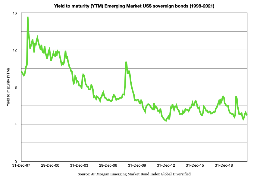 Yields have waned on Emerging Market bonds to near historic lows: