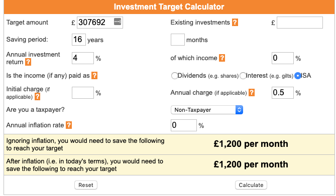 2) Then calculate the monthly amount needed to reach that lumpsum in 16 years (similar to the ISA pot calc).