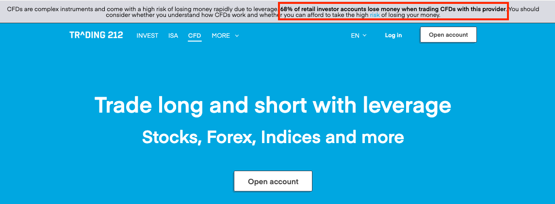 Trading 212 says 68% of retail investor accounts lose money when trading CFDs on its site. (At the time of writing).