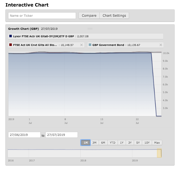 It’s a short duration UK gilt ETF – Lyxor’s GIL5. It’s not supposed to do this. It’s supposed to be as volatile as a Care Bear.