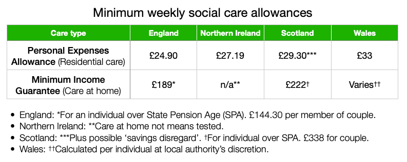 Note, the Minimum Income Guarantee applies to care at home fees, not residential care.