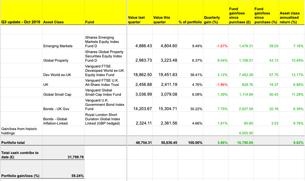 The Slow and Steady portfolio is Monevator’s model passive investing portfolio. It was set up at the start of 2011 with £3,000. An extra £955 is invested every quarter into a diversified set of index funds, tilted towards equities. You can read the origin story and catch up on all the previous passive portfolio posts.