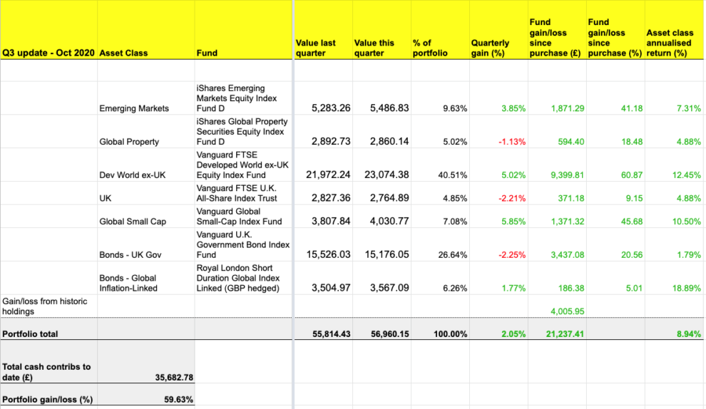 Every quarter we mix £976 into our financial cocktail while the Chancellor sprays everyone with punch. Our animal spirits are split between our seven funds according to our predetermined asset allocation.