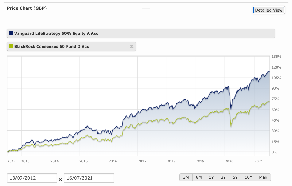 And here’s the Vanguard fund pounding its multi-asset rival – BlackRock Consensus 60: